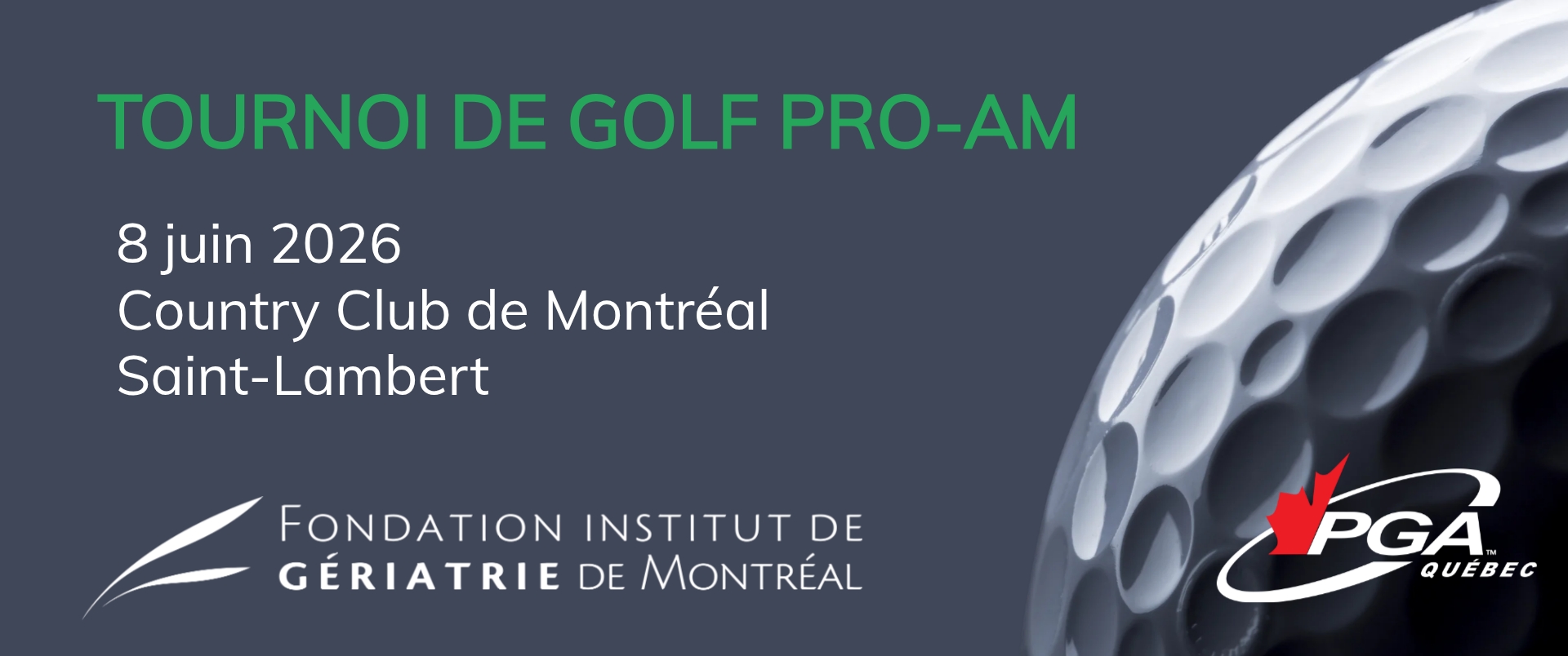 Sous la présidence d’honneur de M. Mario Charpentier, président et fondateur de BCF Avocats d’affaires, la 15e édition du Tournoi de golf de la Fondation Institut de gériatrie de Montréal se tiendra lundi le 8 juin 2026 au Country Club de Montréal à Saint-Lambert.
